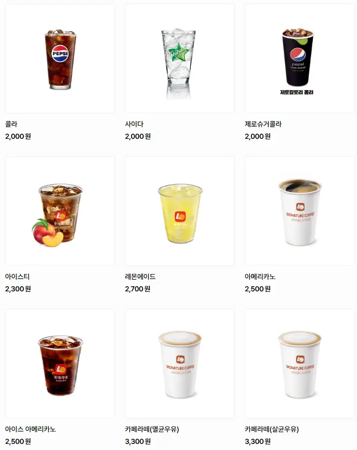 롯데리아 메뉴에서 음료 메뉴도 다양하게 제공하고 있습니다. 콜라, 사이다와 같은 기본적인 탄산음료부터 쉐이크, 아이스티까지 폭넓은 선택이 가능합니다.