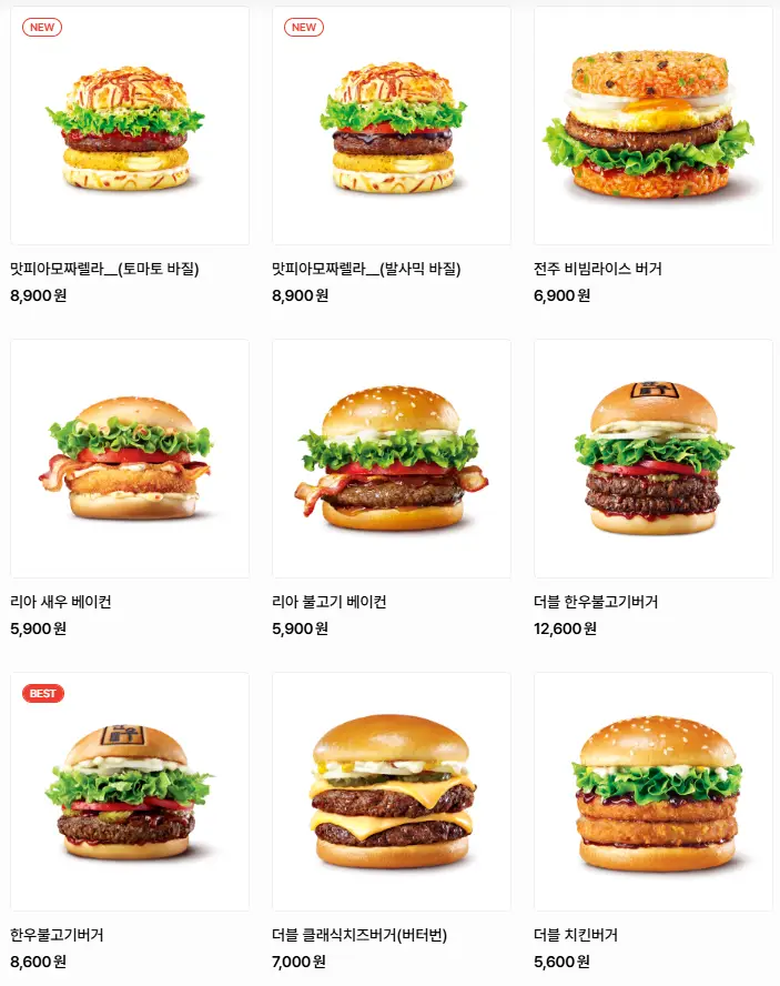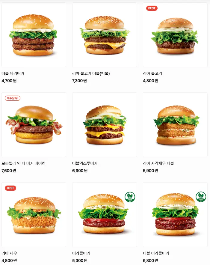 - 리아 새우: 더욱 커진 새우 패티로 만족도를 높인 메뉴