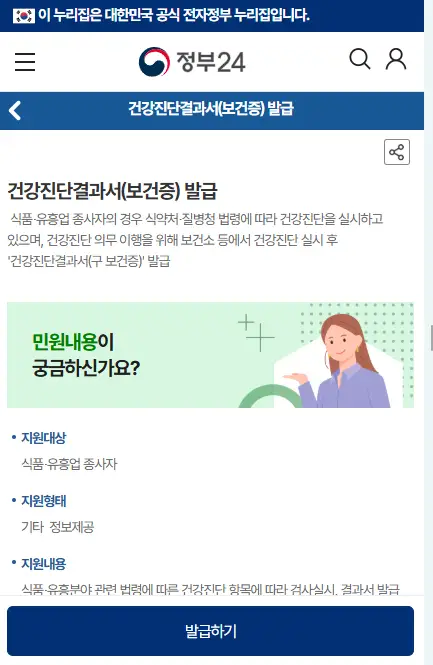 보건증 발급 제대로 하지 않으면 최대 30만 원 과태료를 물 수 있습니다. 보건증 인터넷발급을 5분 만에 가능합니다. 당장 미루다간 큰 불이익이 생길 수 있으니, 지금 바로 아래 링크를 통해 간편하게 해결하세요.