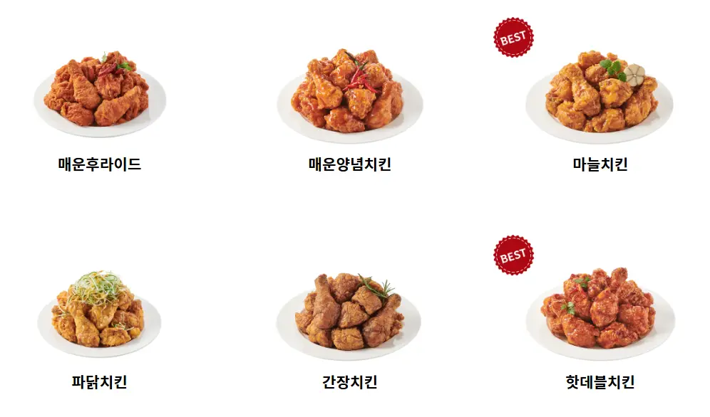 | 양념치킨 | 매콤달콤한 양념이 잘 배어 있어 매력적인 맛을 느낄 수 있습니다. | 다양한 맛의 조화로 중독성 있는 풍미를 제공합니다. |